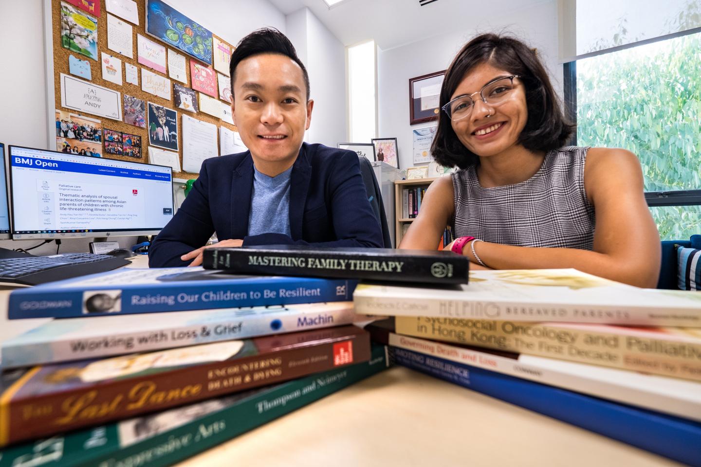 image: A study of families in Singapore with terminally ill children found that parents tend to defer discussing their psychological pain with their spouses to protect them from emotional distress. The study was led by NTU Assoc Prof Andy Ho Hau Yan (left), pictured here together with his PhD student and research team member Ms Oindrila Dutta.