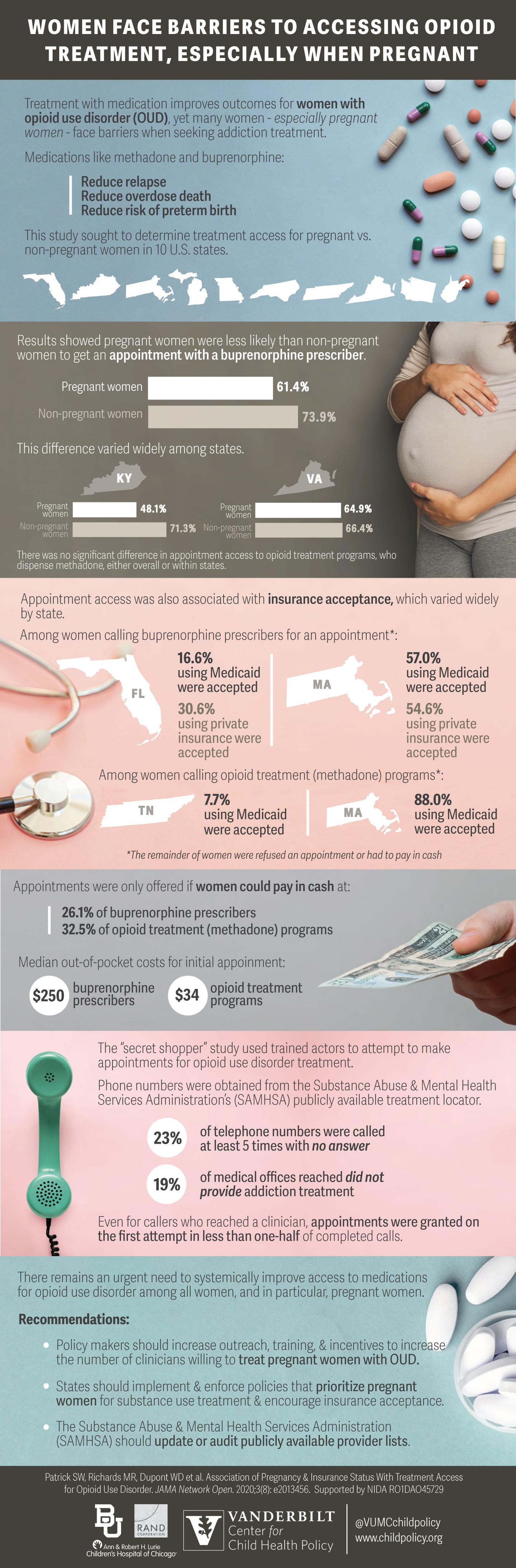 "Only about half of women were given an appointment for treatment with their insurance, the rest were either told no or had to pay cash. In some states, only about 1-in-5 women were given appointments with their insurance," Patrick said. "That's really staggering. You are telling folks in the middle of an epidemic, folks who are disproportionately impoverished, that you need to get into treatment. But then most providers either say no or don't take any insurance."