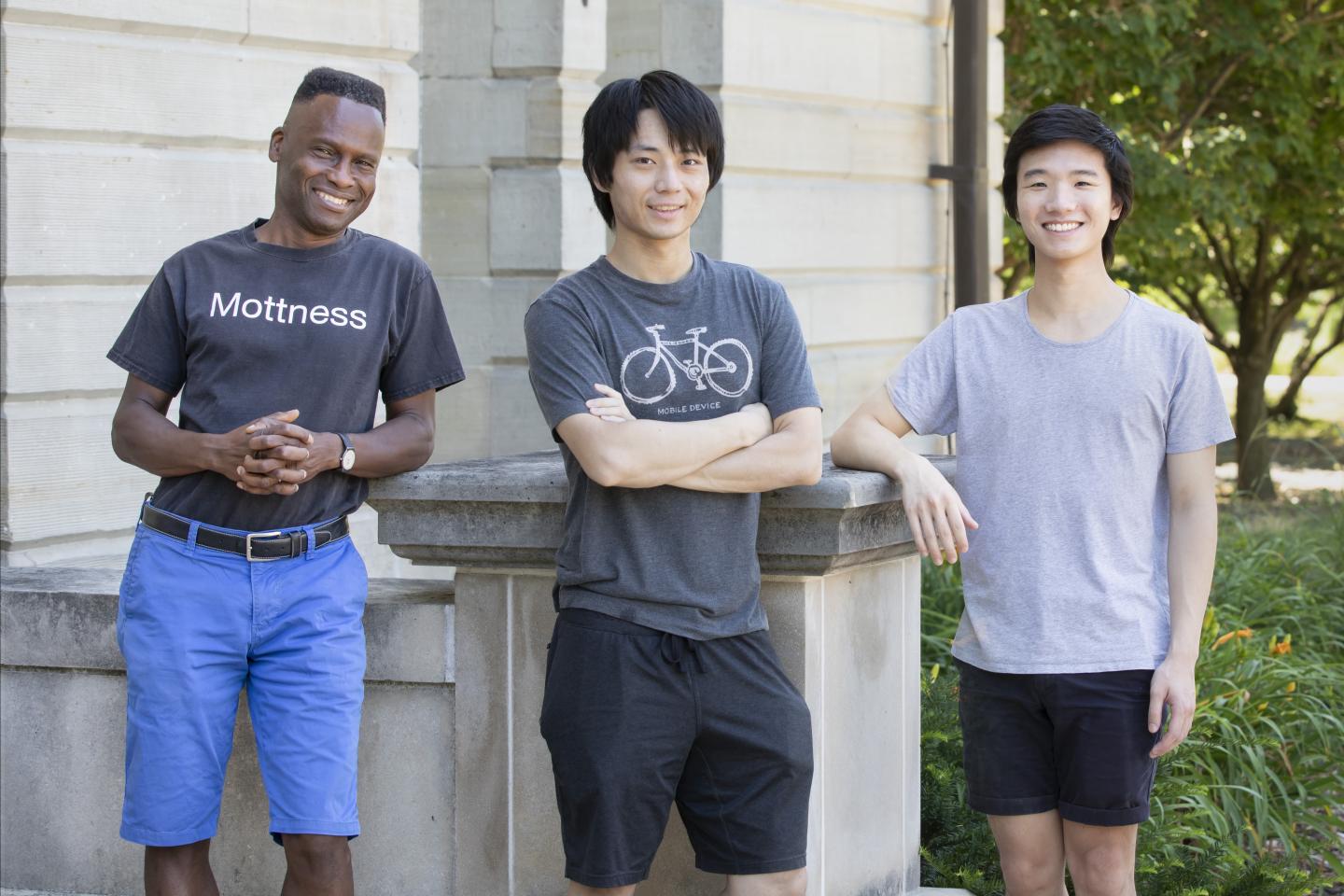 image: Pictured left to right, Illinois Physics Professor Philip Phillips, ICMT postdoctoral fellow Edwin Huang, and Illinois Physics graduate student Luke Yeo pose for a photo on the Bardeen Quad at the University of Illinois at Urbana-Champaign.