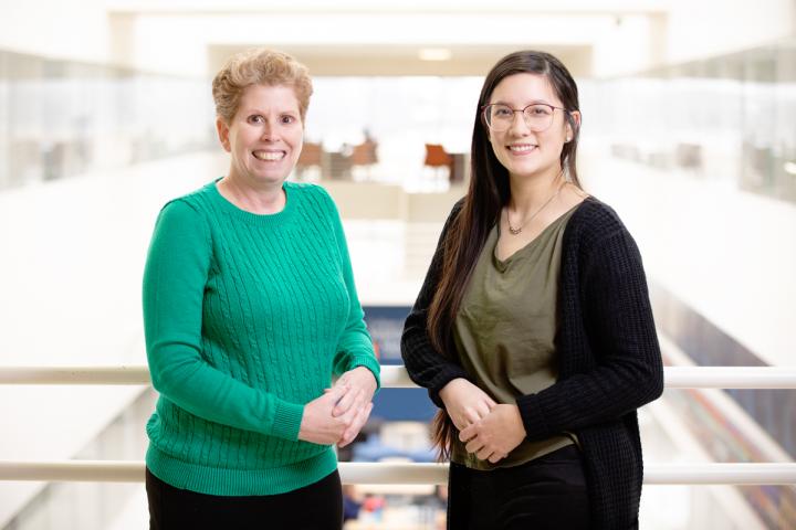 image: Ten days' exposure to the phthalate DiNP interfered with the fertility of female mice, decreasing pregnancy rates for up to nine months afterward, researchers at the University of Illinois found. Comparative biosciences professor Jodi A. Flaws, left, and graduate student Katie (Catheryne) Chiang co-wrote the study.