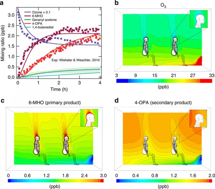To build and validate the models, the researchers used experimental data from prior experiments investigating reactions between ozone and squalene, and between ozone and clothing. The researchers then analyzed further how the squalene-ozone reaction creates pollutants in various indoor conditions.