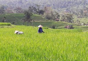 image: Poor people's diets are often dominated by staple foods. Rice cultivation in Indonesia.
