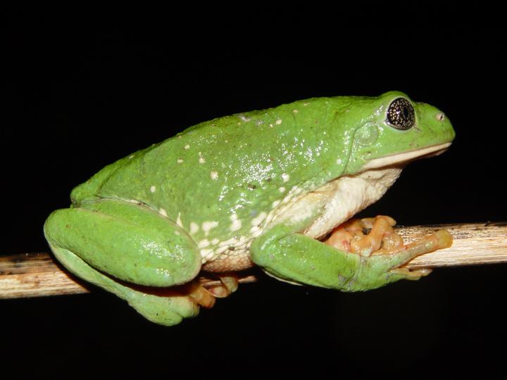 image: A Mexican leaf frog, photographed near Alamos, Mexico. Both plant and animal species in the tropics, like this frog, were found to occur over a narrower range of temperatures than temperate species, which may make tropical species much more vulnerable to climate change.
