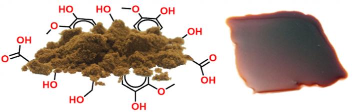 image: Lignin is a promising raw material (left) for thermoplast (right) production.