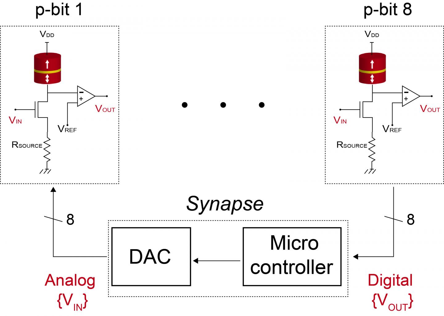 "On a chip, this circuit would take up the same area as a transistor, but perform a function that would have taken thousands of transistors to perform. It also operates in a manner that could speed up calculation through the parallel operation of a large number of p-bits," said Ahmed Zeeshan Pervaiz, a Ph.D. student in electrical and computer engineering at Purdue.