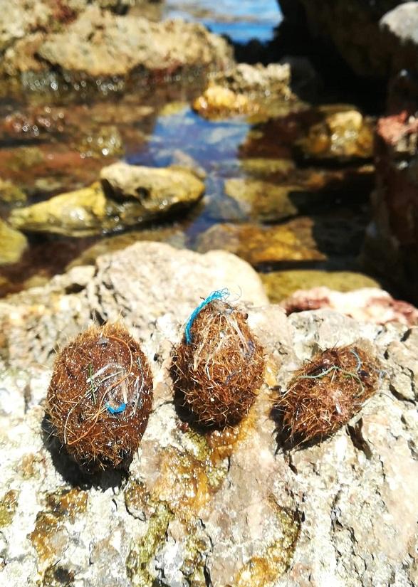 image: In the grasslands, the plastics are incorporated to agglomerates of natural fiber with a ball shape (aegagropila or Posidonia Neptune balls).