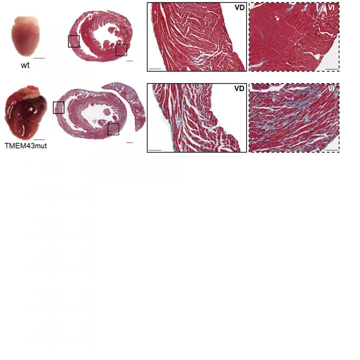 "We realized that to identify effective treatments we needed to get a better understanding of the disease from its earliest stages. For this, we needed an animal model of the disease that we could study from birth," Dr García-Pavía continued. The two research groups together developed a transgenic mouse line that expresses the mutant version of the human protein TMEM43 and mimics the human disease. The researchers found that the mutant TMEM43 protein activates the protein kinase GSK3?. This leads to the progressive death of heart cells, which are gradually replaced by fibrotic tissue, one of the most characteristic signs of the disease. "After a few months, the hearts of these mice had too few cells to pump blood efficiently, and the heart failure resulted in the death of the animals," explained first author Laura Padrón-Barthe.