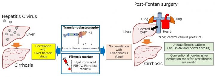 It is well-known that patients who undergo Fontan surgery slowly develop liver fibrosis for years post-operatively. In the past decade, these incidences have been steadily increasing and this is due partly to the need for an accurate diagnostic method. A research group led by Dr. Daisuke Tokuhara, Associate Professor of Pediatrics, Osaka City University Graduate School of Medicine and Dr. Yuki Cho have found that the conventional methods of ultrasound elastography and biomarkers via blood tests do not show the actual status of postoperative liver fibrosis. Their findings have been published in Hepatology Research.