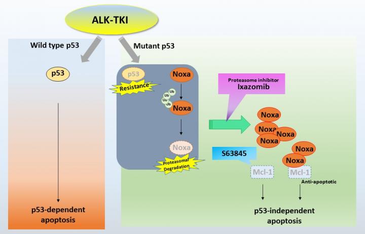 image: Graphical schema showing the mechanism for overcoming intrinsic resistance to ALK-TKIs owing toTP53 mutations