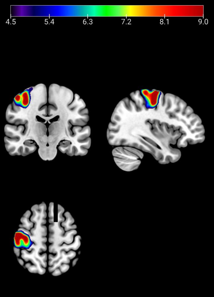 image:Â Average brain activity during a working memory task in a group of healthy subjects as measured by fMRI. The colors represent higher brain activity in the carriers of the G version of the GCPII enzyme, where brains are less efficient at performing the task, compared with those carriers with the A version of the enzyme.
