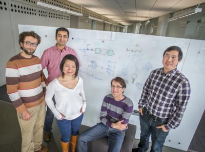 BIOFAB researchers who helped developed standardized sequences for genetic engineering included (from left) Guillaume Cambray, Quynh-Ahn Mai, Vivek Mutalik, Joao Guimaraes and Colin Lam.