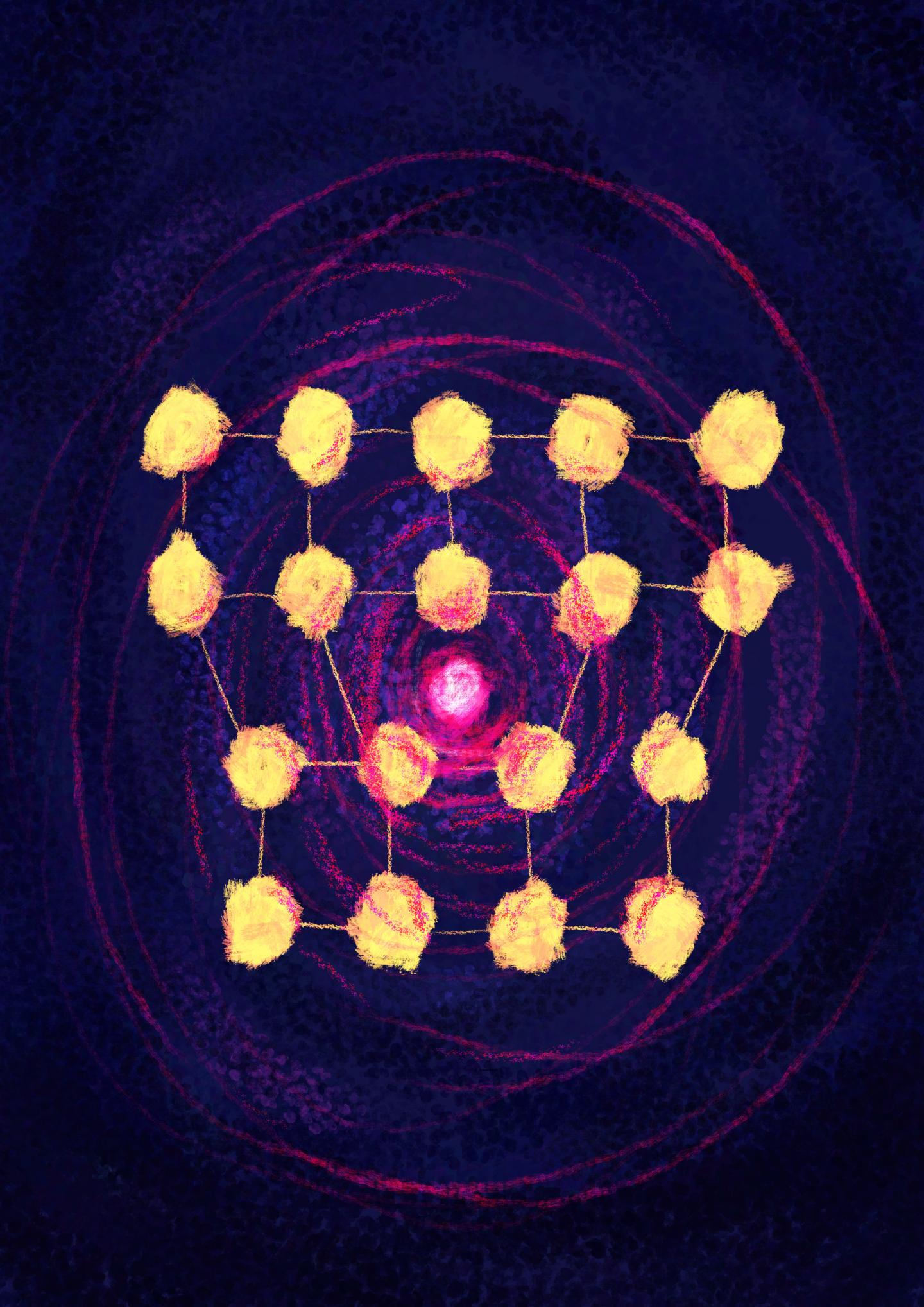 image: Illustration highlighting the association of hydrogen (red) with dislocations in the crystal structure of steel.