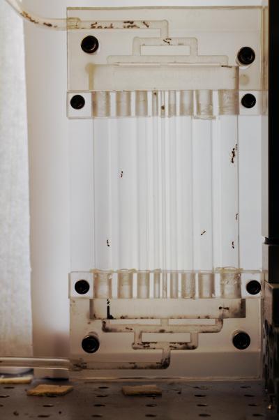 The maze was mounted on an air piston which could periodically be fired, dropping the maze with a force of as much as 27 times that of gravity. The sudden movement caused about half of the ants in the tubes to lose their footing and begin to fall. That led to one of the study's most surprising findings: the creatures used their antennae to help grab onto the tube walls as they fell.