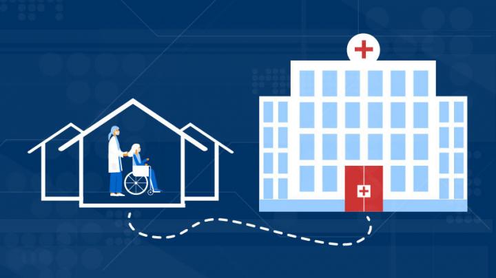 image: An illustration of the connection between a nursing home and a hospital that is described in a new study of COVID-19 in three Michigan nursing homes