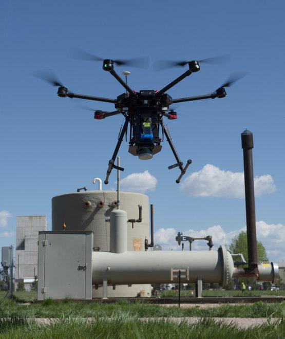 image: A drone sniffs for methane leaks in the Mobile Monitoring Challenge at the test site in Colorado.