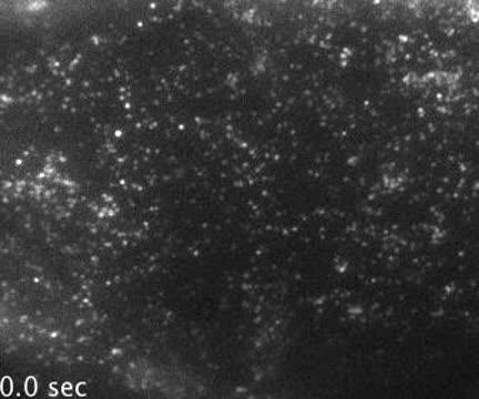 video: Live imaging of mouse cells: The spots moving in and beneath the cell membrane are mostly caveolae.