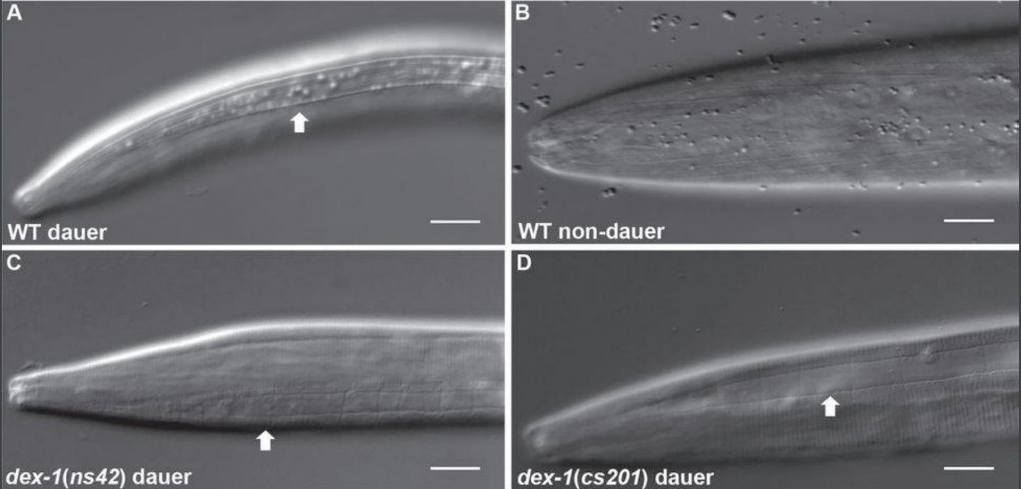 "For many parasitic nematodes, when they're ready to enter the infective stage, they have a similar process. Many of the genes regulating the decision to go into or come out of that infective stage also regulate the decision to enter dauer," he says. "This research gives us insight into their biology and how they make these developmental decisions."