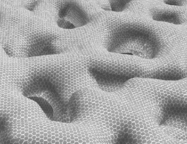 "We created holes by decorating the NiMo surface with silica nanoparticles," explains study co-author Kailong Hu. "Then, when we deposited the graphene layer, gaps were left behind at the nanoparticle positions - like a relief artwork. In fact, the holes are more than just gaps - they are ringed by chemically active ridges called 'fringes'. Technically, these fringes are structural defects, but they drive the chemistry of the electrode."