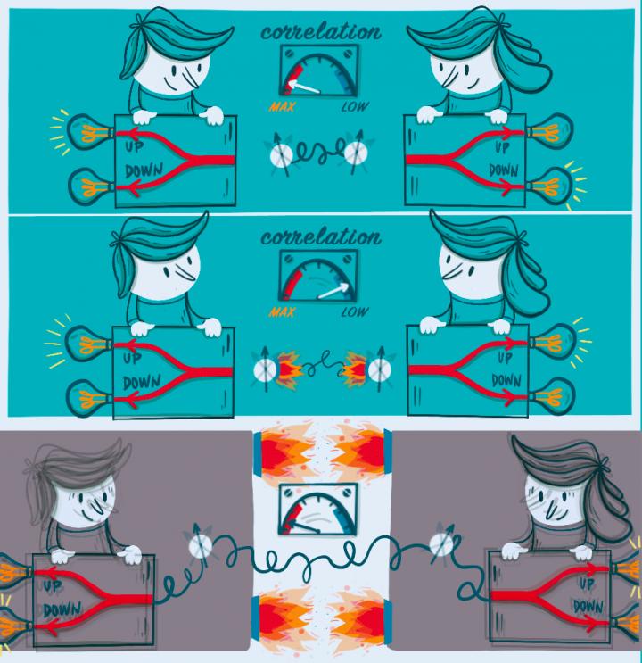 It is easy to illustrate how correlations can arise in everyday life. Imagine that each day of the month you send two of your friends, Alice and Bob, a toy engine of a set of two for their collection. You can choose each of the engines to be either red or blue or either electric or steam. Your friends are separated by a large distance and do not know about your choice. Once their parcels arrive, they can check the colour of their engine with a device that can distinguish between red and blue or check whether the engine is electric or steam using another device. They compare the measurements made over time to look for particular correlations. In our everyday world, such correlations obey two principles - "realism" and "locality". "Realism" means that Alice and Bob reveal only what colour or the mechanism of the engine you had chosen in the past, and "locality" means that Alice's measurement cannot change the colour or the mechanism of Bob's engine (or vice versa). Bell's theorem, published in 1964 and considered by some to be one of the most profound discoveries in the foundations of physics, showed that correlations in the quantum world are incompatible with the two principles - a phenomenon known as quantum non-locality.