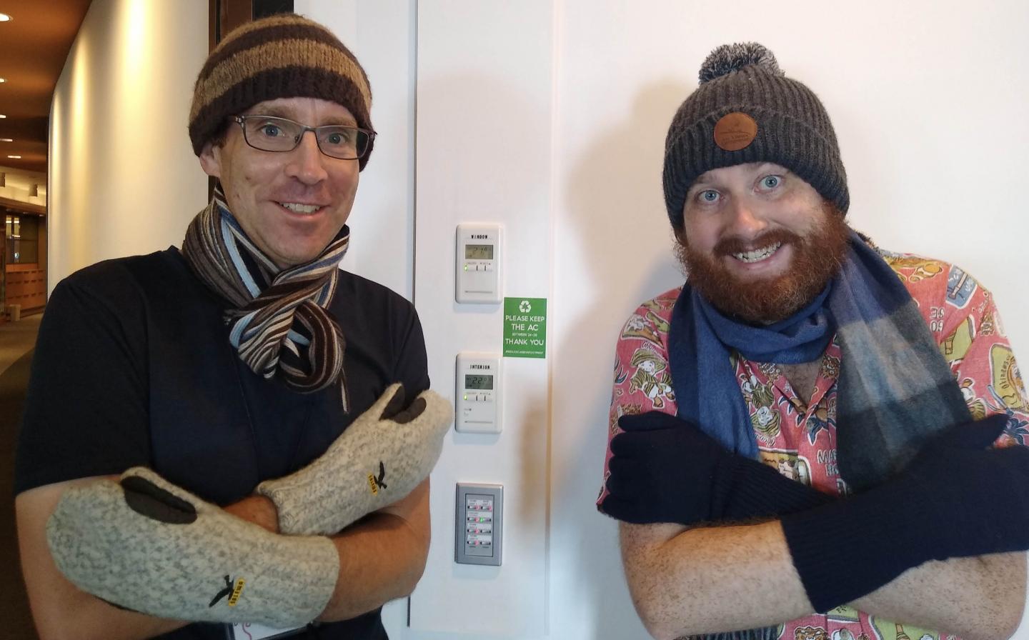 image: Researchers Professor Thomas Busch (left) and Dr. Thomás Fogarty (right) after finishing a day's work on ultracold atom theory.