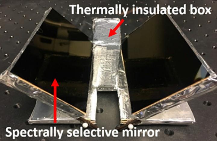"One of the key innovations of our system is the ability to separate and retain the solar heating and radiative cooling at different components in a single system," says co-first author Lyu Zhou, a PhD candidate in electrical engineering in the School of Engineering and Applied Sciences. "During the night, radiative cooling is easy because we don't have solar input, so thermal emissions just go out and we realize radiative cooling easily. But daytime cooling is a challenge because the sun is shining. In this situation, you need to find strategies to separate solar heating from the cooling area."