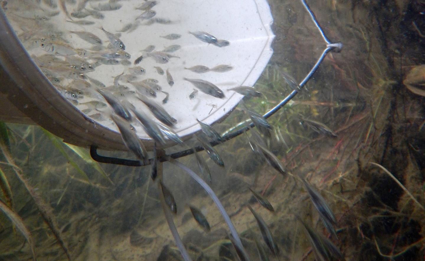 image: The researchers released 3000 experimental fish into a natural river habitat without stickleback, exposing them to natural selection. After one year, the remaining fish were recaptured and examined genetically.