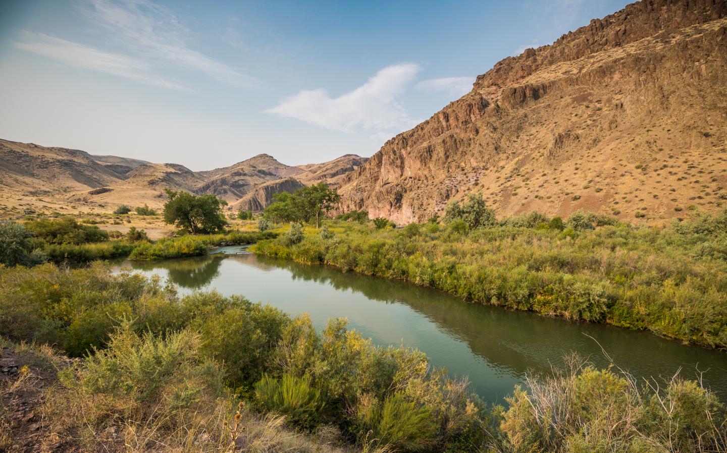 image: The Owyhee River Canyon in Oregon shows the difference between shadier riverside habitat and the hotter, dryer upland areas.