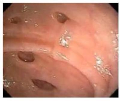 This is an endoscopic picture of a clean colon (large intestine) with diverticula.