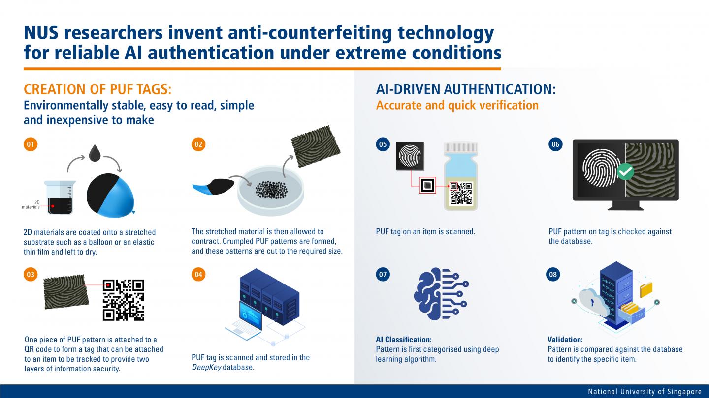 image: NUS researchers invent anti-counterfeiting technology for reliable AI authentication under extreme conditions.