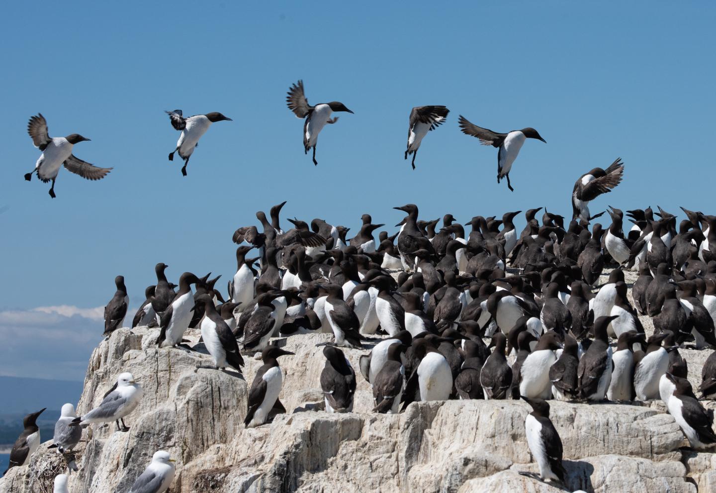 While all birds landed when it was wind still, 60% of attempts failed in a strong breeze. This increased to 80% in near-gale winds. Razorbills, the more manoeuvrable of the two species, were better at landing overall, but "runway" size was important for all birds, which could land more easily on larger ledges where there is more airspace to manoeuvre above their landing spot.