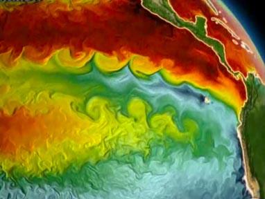 image: Mathematicians from UMD have developed the first rigorous proof for a fundamental law of turbulence. Batchelor's law, which helps explain how chemical concentrations and temperature variations distribute themselves in a fluid, can be seen at work in the variously sized swirls of mixing warm and cold ocean water.