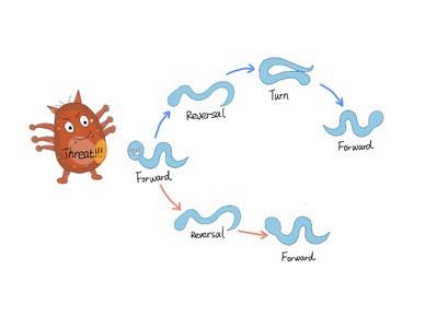 image: Schematic diagram of C. elegans' escape behaviour.