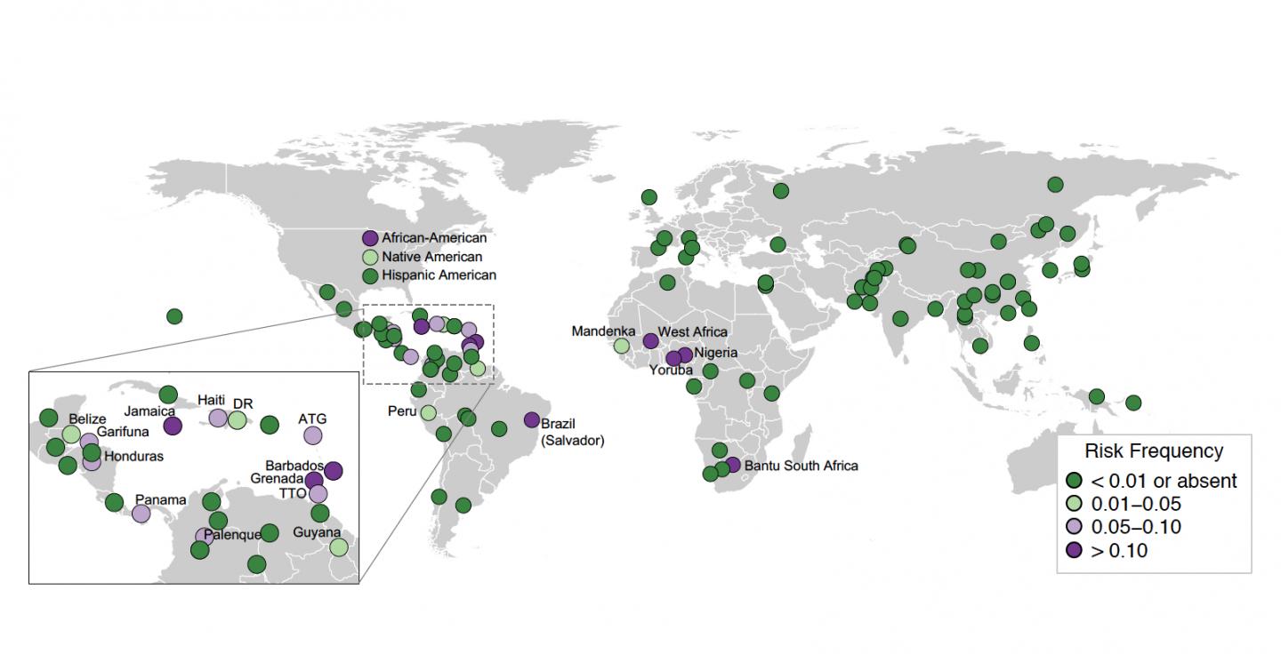 New York, NY (December 27, 2018) -- In the largest population genomics investigation to date, a team of researchers at the Icahn School of Medicine at Mount Sinai, Stanford University, and the University of Colorado have discovered that kidney disease risk variants of the gene APOL1, previously known to affect African and African American populations, are also found at appreciable frequencies in Caribbean and Latin American populations. Because these populations are historically under-studied and under-tested in connection with APOL1, the gene's impact on these populations is currently unknown. The findings were described in a publication released today in The New England Journal of Medicine.