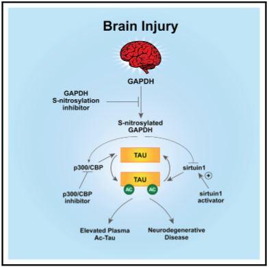 Lastly, because the tau protein freely diffuses from the brain into the blood, the researchers examined whether ac-tau might also be elevated in the blood after TBI. In mice, they found that blood levels of ac-tau correspond tightly with brain levels, and that blood levels return to normal when mice are treated with therapeutics that lower brain ac-tau and thereby protect nerve cells. Importantly, they also found that ac-tau was significantly increased in the blood of human TBI patients.