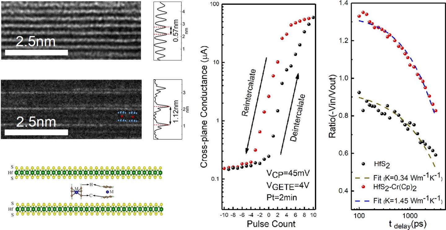 image: The dynamic intercalation of a wide variety of organometallics in expandable van der Waals gaps of layered HfS2, provide a unique opportunity for reconfiguring the electrical and thermal properties of this materials.