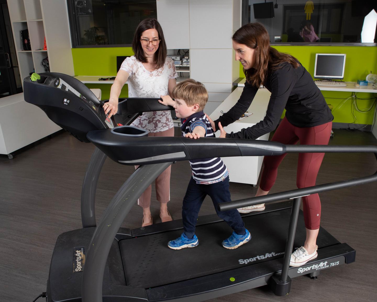 image: Nicole Proudfoot, Ph.D. candidate, Kinesiology (left) with study participant Freddie Warriner and Hilary Caldwell, Ph.D. candidate, Kinesiology.