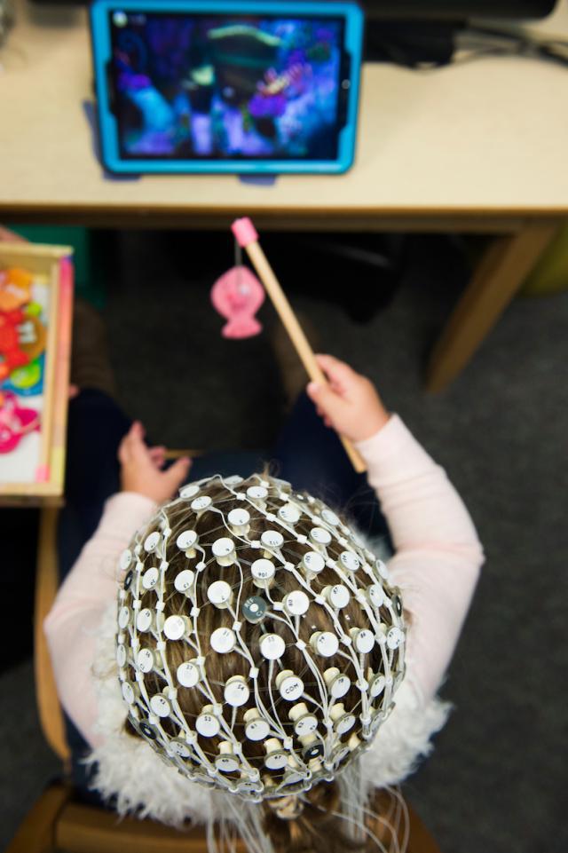 To tease out those differences in children, the researchers recruited 153 toddlers and, in individual sessions, outfitted each with a net of head sensors that measured brain-wave activity while a steady stream of tones sounded in the room. As the children watched silent cartoons on a television screen, the pitch of the tones changed, and the researchers measured the P3 brain wave accompanying each change in pitch.