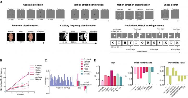 Most importantly, they were able to identify both a task-specific but subject-invariant component of learning and a subject-specific but task-invariant perceptual learning ability. An additional least absolute shrinkage and selection operator (LASSO) regression analysis revealed that a number of personality traits, including intelligence quotient, extraversion, and neuroticism, made significant contributions to individual differences.