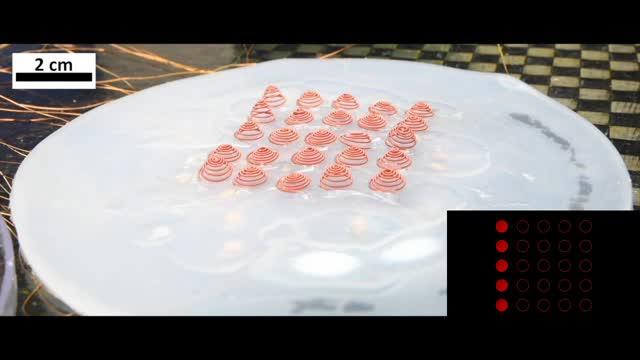 In cephalopods, voxels are controlled by the animal's papillae muscles which allow their skin to take numerous forms, protrude outward, and take new shapes in fractions of seconds (see video, see video). The team took inspiration from the cephalopods' papillae to reproduce digital texture voxels (DTVs) from twisted spiral artificial muscles (TSAMs). With an input voltage of only 0.2 V/cm, TSAMs provide a stroke of 2000% and a roughness profile ranging from a few microns to one centimeter. "These lightweight twisted spiral artificial muscles hold the potential to replace heavy and bulky devices based on conventional electric and pneumatic actuators," said Lamuta. "We actuate this skin using small electrical impulses instead of heavy power sources and noisy air compressors, which allows for more precise movement and general ease of use."