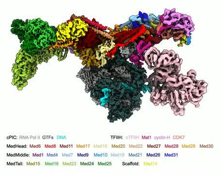Famed biochemist Roger Kornberg discovered the Mediator complex in yeast in 1990, a project for which he won the 2006 Nobel Prize in Chemistry. But Mediator comprises a daunting 26 subunits -- 56 total when combined with the pre-initiation complex -- it's taken researchers until now to obtain high-resolution images of the human version.