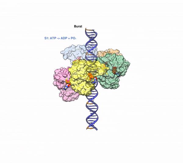 At its core, the model is a series of mechanical actions that must fit together and take place in sequential order for everything to work properly. Pajak's simulations predicted a specific series of mechanical signals that tell the bottoms of the proteins whether or not they should be gripping the DNA. Like a line of dominoes falling, removing one of the signaling pathways from the middle should stop the chain reaction and block the signal.
