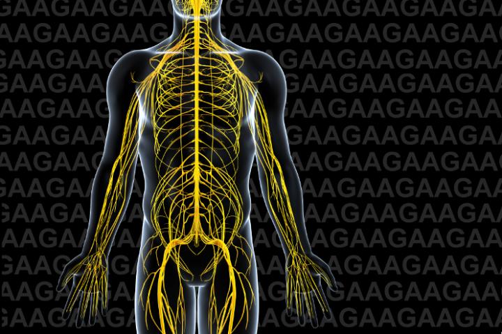 image: Friedreich's ataxia is a neurodegenerative disease caused by a genetic defect in which massive expansion of a three-letter DNA repeat (GAA) interferes with the production of an essential mitochondrial protein