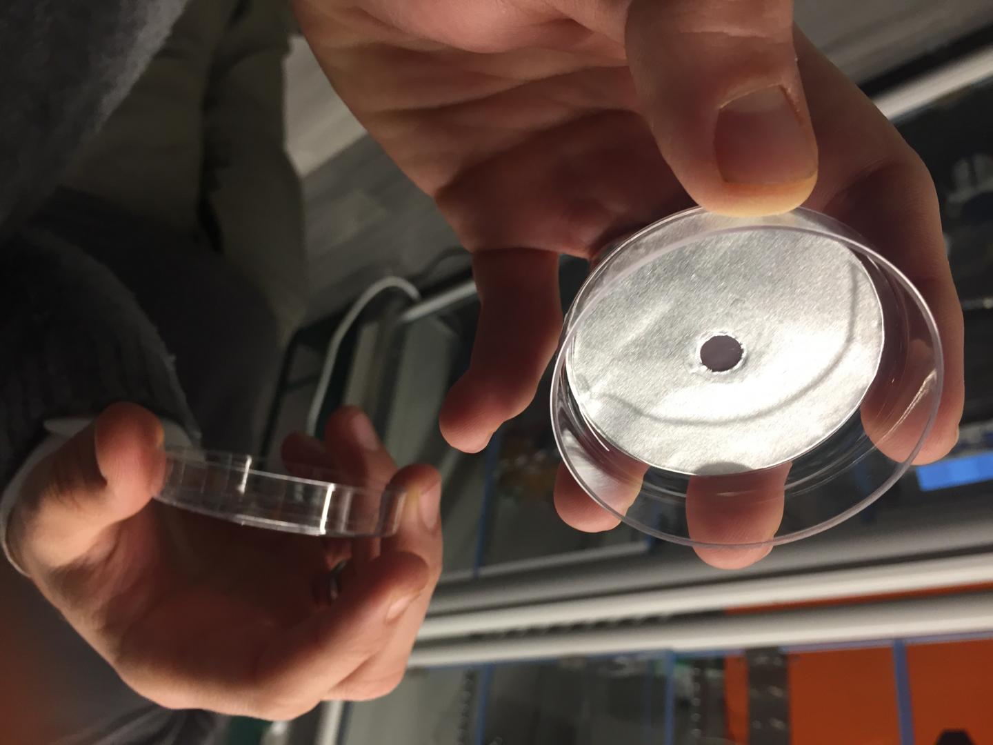 image: Sample of material developed at NYU Tandon comprising perfluorinated sulfonic acid ionomer. One part of the copolymer conducts ions, and the other is highly permeable to oxygen, a dual benefit to hydrogen fuel cells.