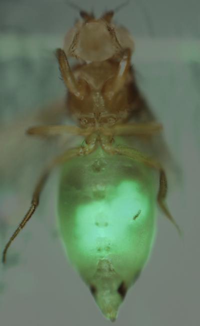 This shows an epithelial tumor (in green) implanted in a fly host.
