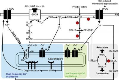 In the lungs, pathological increases in the contraction of the smooth muscle cells (SMCs) lining airway walls—a process that decreases airflow—contribute to the chain of events leading to asthma and COPD, two common lung diseases. Jose Perez-Zoghbi and colleagues from Texas Tech University Health Sciences Center designed a series of experiments to investigate the role of the enzyme PKC in this process. The results, which appear in The Journal of General Physiology, provide new insight into the mechanisms involved in regulating luminal diameter of small airways and reveal PKC as a potential target for drug therapies.