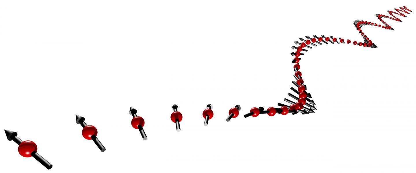 image: Spin (magnetic order) in the multi-ferroic material bismuth-ferrite 'cycles' through the crystal, offering potential application in emerging electronics fields such as magnonics