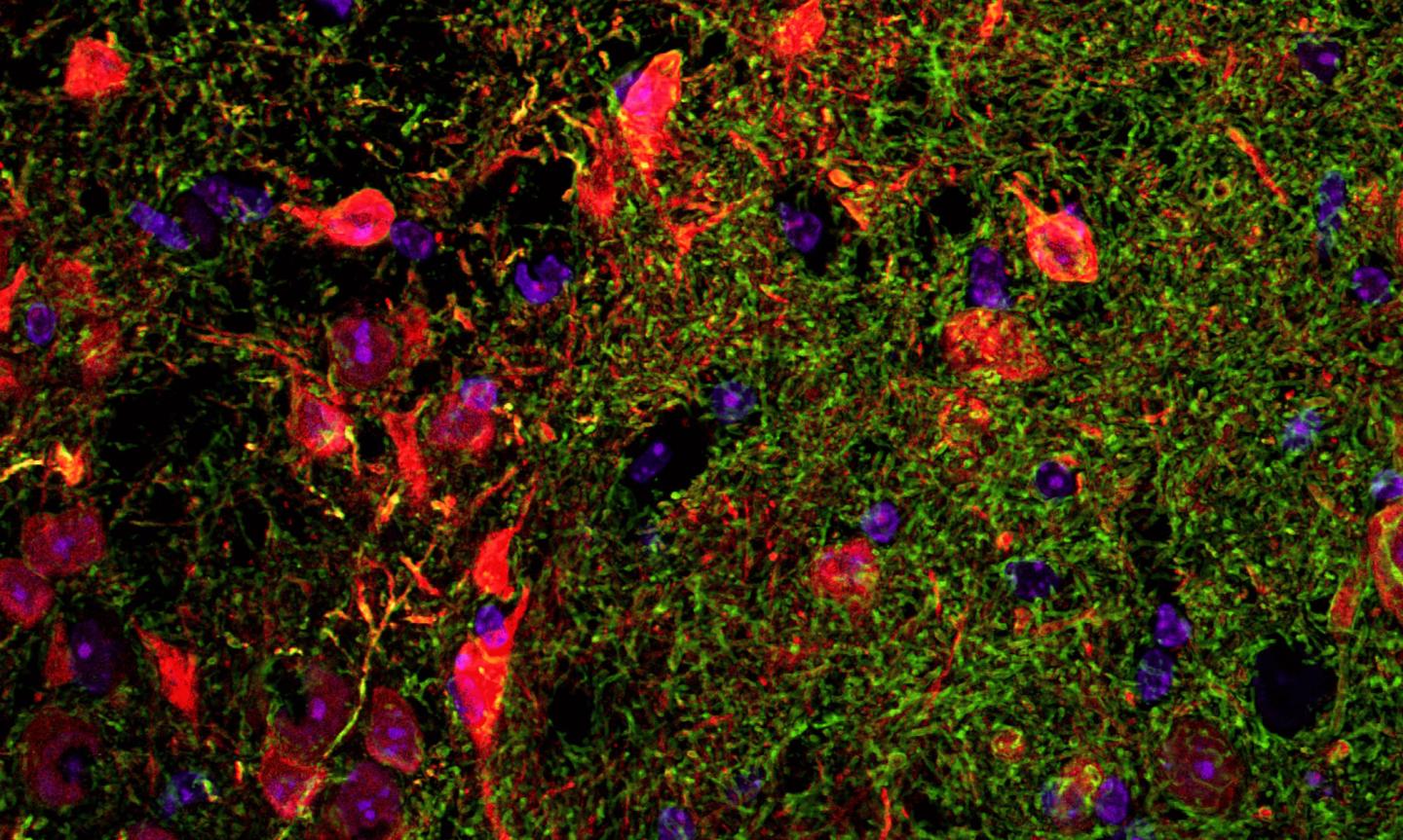 image: Thalamic neurons with gpr12 receptors (red) underlie working memory.