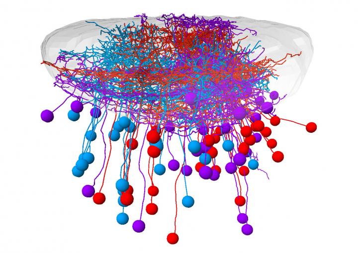Analyzing this pool of data showed that retinal ganglion cells as well as neurons in the tectum respond to optical stimuli in a highly specialized manner: While some cells are activated by small objects, others react to bigger objects, or even threats. Some cells are interested in the direction of motion, others only in whether the environment gets darker or brighter. Interestingly, the special-purpose neurons do not distribute randomly in the tectum. Retinal ganglion cells reacting to threats send their projections into deep tectal layers, where they meet the receiving processes, or dendrites, of tectal neurons. In contrast, cells responding to prey-like objects make synaptic connections in more superficial layers. This specialization of different tectal layers most likely allows zebrafish to quickly distinguish between prey and threat - an essential skill for survival.