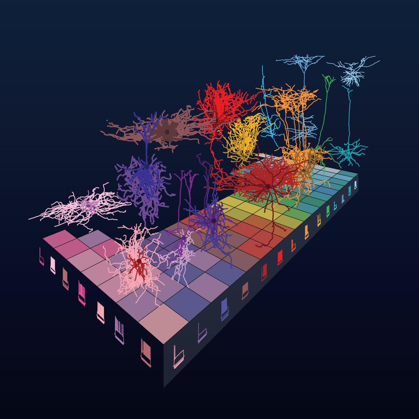 If you think of the classical periodic table, chemical elements can be described and sorted in a number of ways: their mass, their chemical properties, whether they are metal or not. Neuroscientists are faced with a similar challenge. A given neuron will have many different personality traits that distinguish it from other neuron types: its shape, its behavior, the unique set of genes it switches on, its location in the brain, the other types of cells it interacts with.