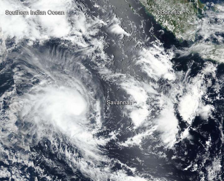 Tropical Cyclone Savannah continued to move in southerly direction in the Southern Indian Ocean, and move away from Indonesia. NASA-NOAA's Suomi NPP satellite provided a visible image of the storm. Savannah is no threat to land areas.